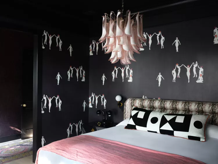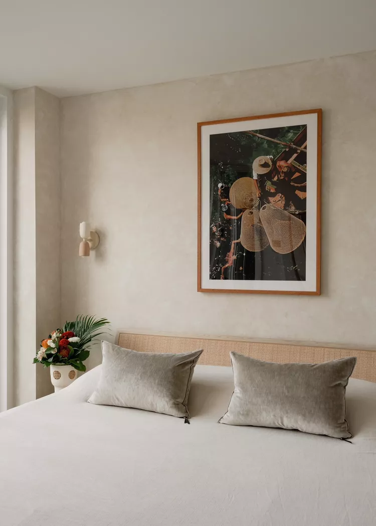Bedrooms should feel calming and relaxing, so designer Emma Montgomery prefers to remove as much visual clutter as possible. Instead of hanging a grouping of prints on the walls, she opted for focusing her attention on the walls themselves.